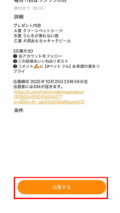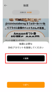 Xアカウントの連携ができたら「応募する」をタップ