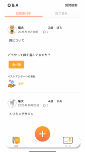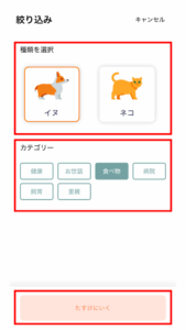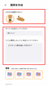 質問したいペットを選択し、質問のタイトルと内容を入力